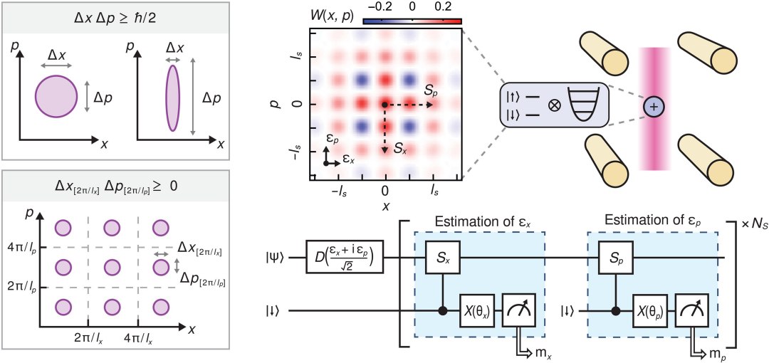 O protocolo foi implementado usando o pequeno movimento vibracional de um qubit atmico, um on aprisionado por feixes de luz – pense nesse tipo de qubit como o equivalente quntico de um pndulo. O on foi preparado em um “estado de grade”, um tipo de estado quntico para correo de erros. A equipe demonstrou que tanto a posio quanto o momento do on podem ser medidos juntos com uma preciso alm do “limite quntico padro” – o melhor valor possvel usando apenas sensores clssicos.