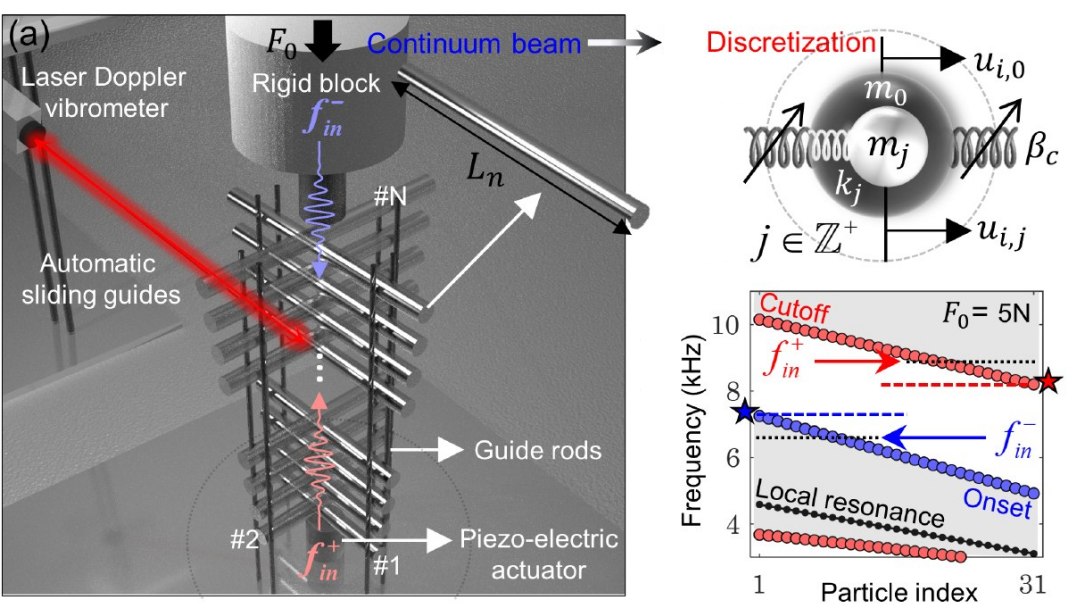 Combinando efeitos no lineares com assimetria espacial e ressonncia local – quando vibraes especficas se amplificam fortemente em certas partes da estrutura – a equipe alcanou uma converso de frequncia bidirecional simultnea dentro de um nico sistema. Isso nunca havia sido demonstrado antes em experimentos fsicos.