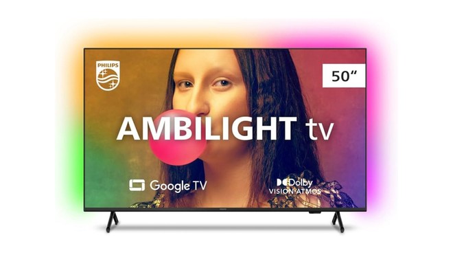 A Philips tem uma funcionalidade que não existe em nenhuma outra TV (ao menos de forma nativa): o Ambilight. Conjunto de luzes que se adaptam ao conteúdo exibido na tela, essa função era vista apenas em modelos mais caros, mas agora pode ser encontrada também em opções mais acessíveis como a 55PUG7908, que ainda traz Google TV e boa tela 4K compatível com Dolby Vision.