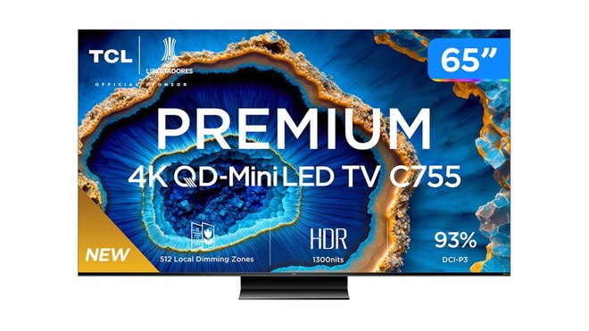 Se você quer uma ótima TV de uma marca diferente de Samsung e LG, a C755 da TCL é certamente o modelo mais indicado. Ela se destaca por trazer painel QD-Mini LED de até 85 polegadas, compatível com Dolby Vision IQ, IMAX Enchanced, HDR10+ e taxa de atualização de 144 Hz VRR (até 240 Hz em Full HD com o Game Accelerator) com AMD FreeSync Premium Pro, trazendo ainda Google TV e sistema de som de 50 W em 2.1 canais da Onkyo.
