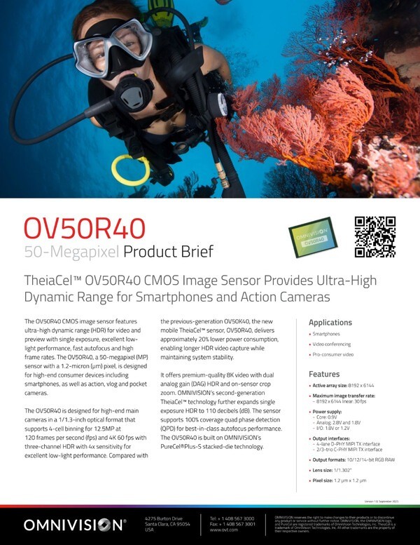 A DJI deve revelar em breve a sua câmera de bolso a Osmo Pocket 4. Porém, um novo protagonista dos rumores acaba de ser oficializado. Trata-se do sensor OmniVision OV50R40 de 50 MP e 1/1,3 polegada.