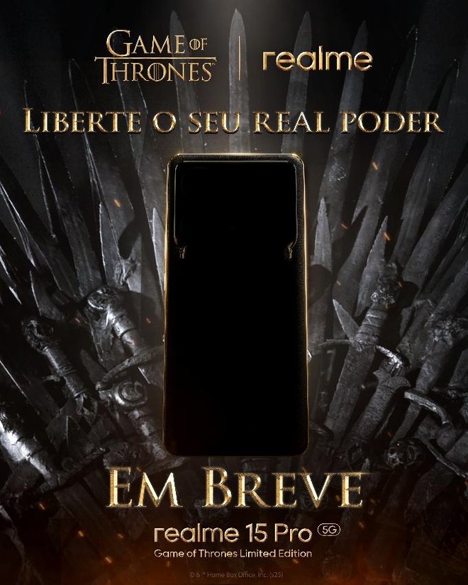 Depois de liberar um teaser indicando o lançamento de uma edição especial do realme 15 Pro inspirada em Game of Thrones, a empresa chinesa confirmou nesta segunda (29) a existência do dispositivo, mas ainda não revelou seu visual oficial.